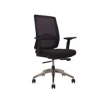 Asiento regulable en altura con pistón neumático, disponible en sistema reclinable de atraque en posición vertical y sistema de reclinación Syncro con ajuste en 4 posiciones, ajuste de tensión, brazos regulables en altura, soporte lumbar regulable en altura, asiento tapizado con espuma inyectada y tela color Negro, tapa inferior de PVC, respaldo de malla, base con garruchas con ejes de acero, dos años de garantía.
